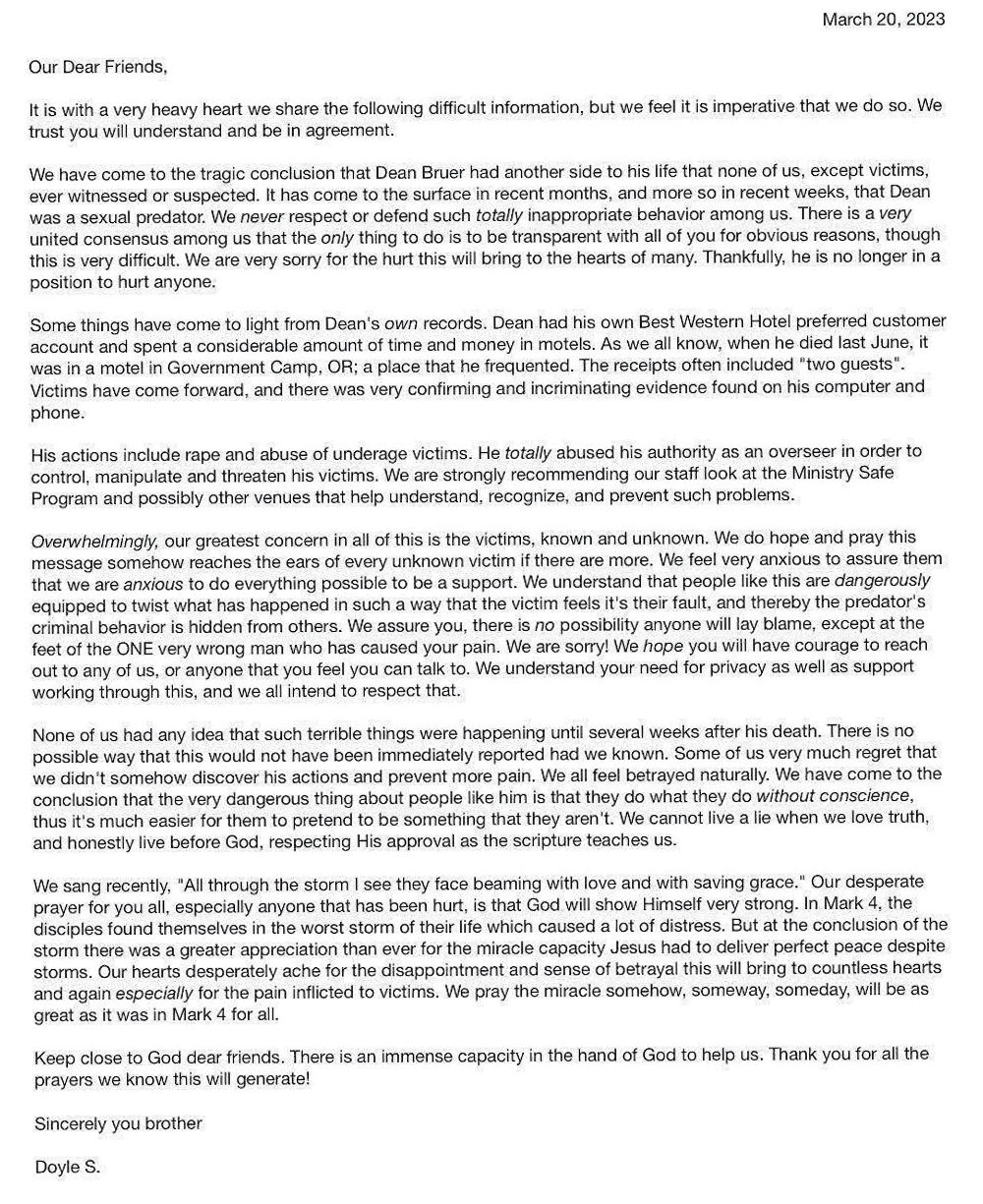 When the DeanBruer sexual abuse issue surfaced and I witnessed how it unfolded, it confirmed to me the complete absence of moral integrity within the organization. How could anyone fail to see the ugly message in that development?
